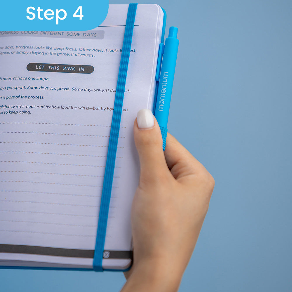 Momentum combines goal-setting, daily planning, habit tracking, mindset prompts, and self-reflection in one premium tool. The rotating prompts keep it fresh, the undated layout gives you flexibility, and it's built for real life—busy weeks, missed days, creative bursts, and all.