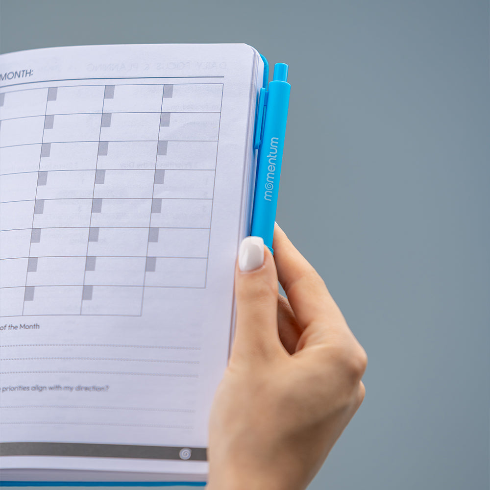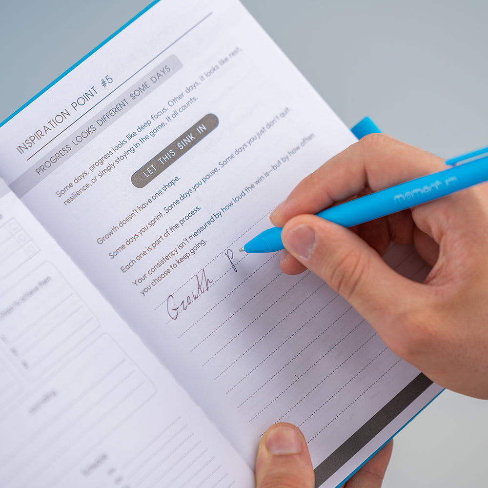 Momentum combines goal-setting, daily planning, habit tracking, mindset prompts, and self-reflection in one premium tool. The rotating prompts keep it fresh, the undated layout gives you flexibility, and it's built for real life—busy weeks, missed days, creative bursts, and all.